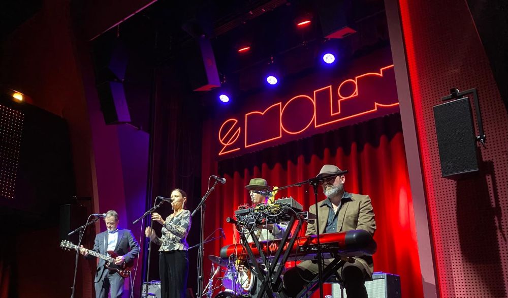 Asistir a un concierto de The Delines en 2025, y en un entorno como el de la sala El Molino de Barcelona, es lo más parecido a saltar en el tiempo y encontrarte en cualquier garito de Jazz de los años 50 en los Estados Unidos. Los de Portland tienen una sonoridad única, elegante y muy cinematográfica, que te embelesa por su sonido hipnótico, donde la guitarra de Willy Vlautin, el bajo de Freddy Trujillo, los teclados y la preciosa trompeta de Cory Gray, y el colchón sonoro de la batería y las escobillas de Sean Oldham, arropan a la magnética y aterciopelada voz de Amy Boone.